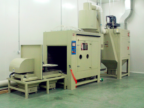 該設備配備了一臺干式除塵器,用于清理噴砂過程形成的粉塵,除塵器安裝于噴砂室體旁邊。